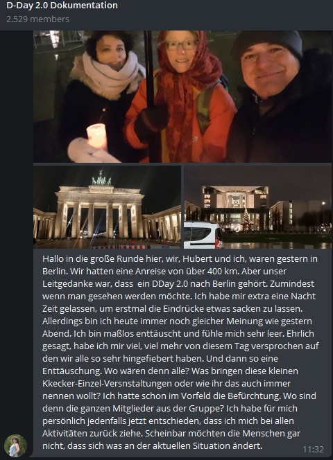 Der Querdenker Markus Lowien kündigte noch 2020 den „D-Day 2.0“ an, der eigentlich irgendwann zwischen dem 20.12. und 31.12.2020 stattfinden sollte. Erst jetzt am 06.01.2021 gab es Regungen in den Telegram-Chats von Markus Lowien.