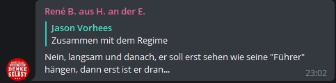 Fazit: Wie die Querdenker-Szene tickt, ist mir inzwischen klar geworden. Sehr klar sogar. Ich bin gespannt, was als Reaktion auf diesen Artikel kommt. Vielleicht werde ich ja ein drittes Mal „überprüft“, oder es gibt noch mehr Hinrichtungsfantasien gegen mich.