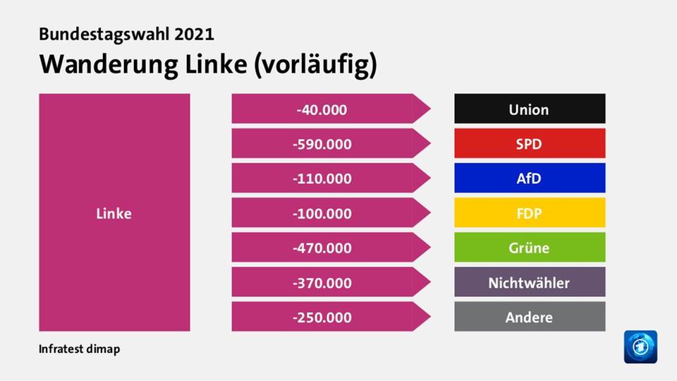 Das ihre Annahmen völlig falsch sind, hat diese Bundestagswahl jetzt bewiesen. Knapp 500.000 Wähler*innen sind zu den Grünen gewechselt und 600.000 Wähler*innen zur SPD, während nur 100.000 Wähler*innen zur AfD gewechselt sind. Das bedeutet, dass weit über eine Millionen Menschen offensichtlich nicht von irgendwelchen „abgehobenen symbolischen Debatten“ verschreckt worden sind, sondern eher von der Uneinigkeit und Inkonsistenz unserer Partei, die Sahra Wagenknecht mit ihrer extremen Spalterei in großem Maße mitzuverantworten hat.
